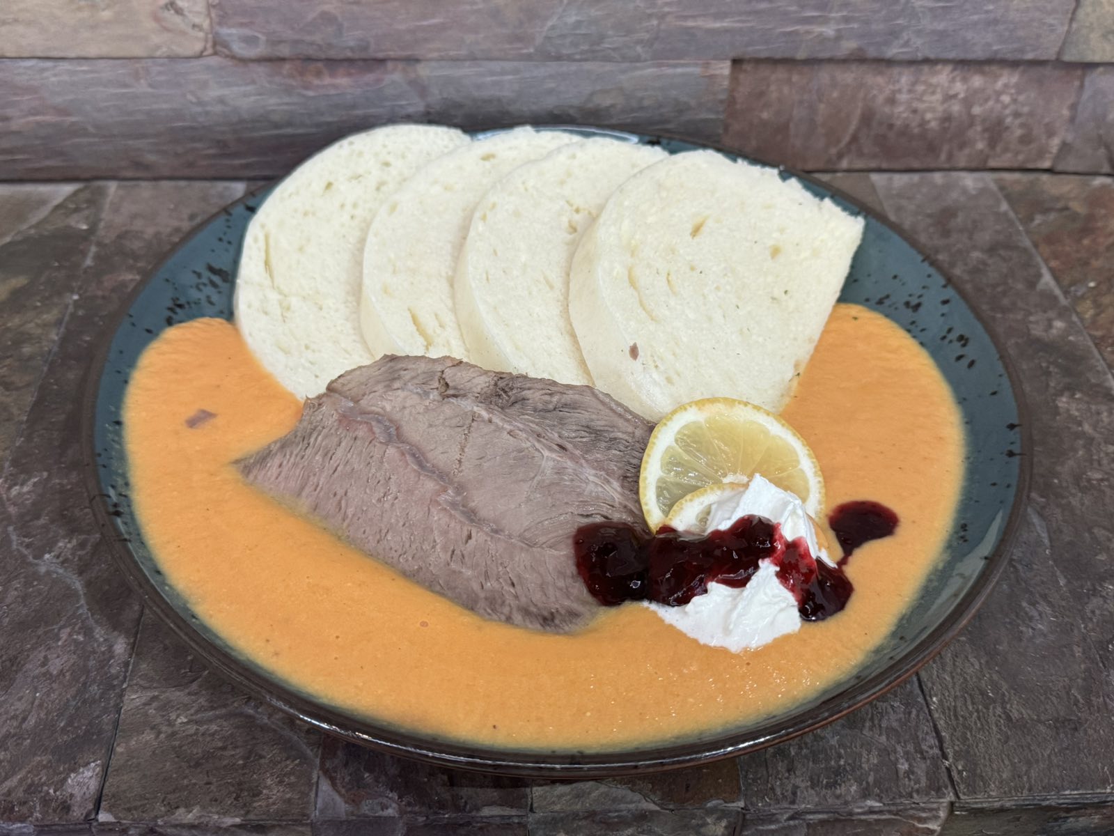 1. 120g fried chicken gordon blue, 200g mashed potatoes (1,3,7)