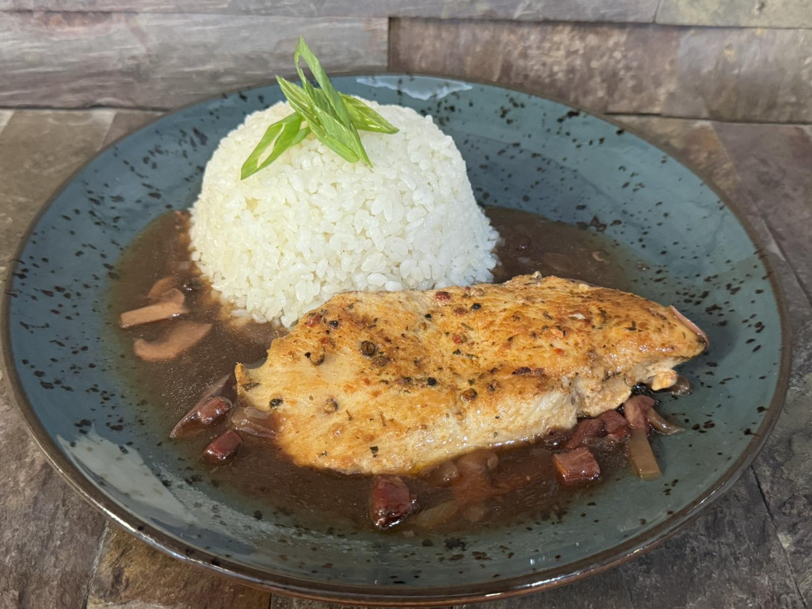 1. 120g pork slice eagle (cheese, ham, mushrooms), 180g rice (7)